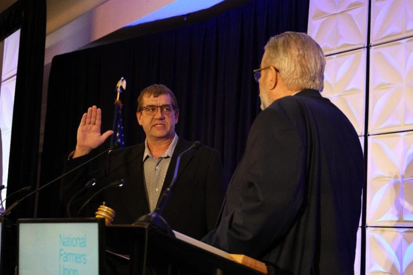 Jeff Kippley is sworn in as Vice President of National Farmers Union for a third term by NFU General Counsel Dave Velde.